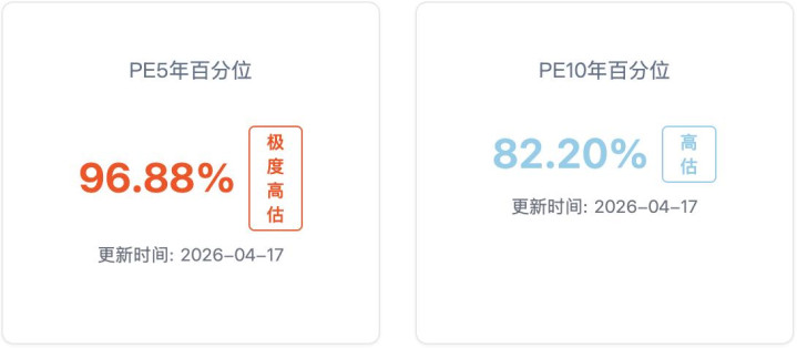 全市场估值明显已经走到偏高的位置了,5 年分位已经到了 96.88%,10 年分位也有 82%。